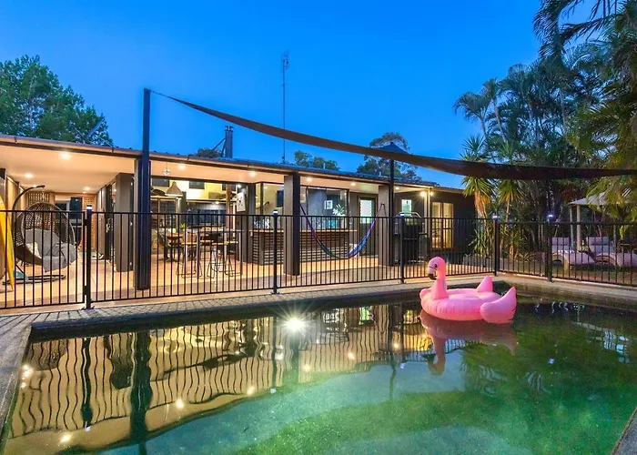 בדירה Cool Noosa Home. Central Location. A/C. Gym. Wifi. Netflix, אשר תופסת 300 מ"ר, ישנם פטיו, בריכת שחייה פרטית וגינה. הפארק הלאומי נוסה שוכן במרחק של 2.9 ק"מ בזמן שNoosa Fair Shopping Centre זה כ-550 מטר משם.